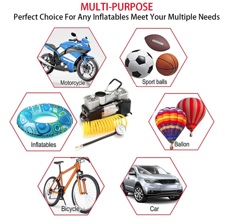 Araç lastiği, motosiklet lastiği, bisiklet lastiği, top vb. birçok şişirme işleminde kullanılır.