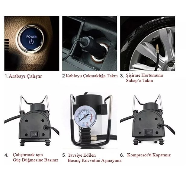 Hava Kompresörü; Üniversal bir üründür, 12V olan tüm marka ve model araçlarda çalışır.