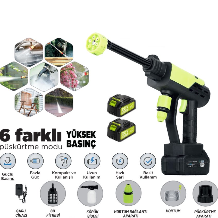 Yüksek performanslı ve güçlü bu kablosuz araç yıkama su tabancası ile temizlik deneyiminizi üst seviyeye taşıyın.