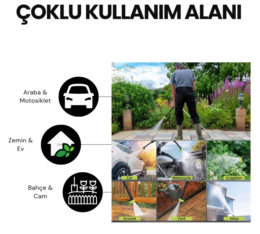 Diğer ürünlere göre daha gelişmiş özelliklere sahip olan bu yüksek basınçlı araç yıkama makinesi olarak ve bahçe ve çeşitli işlerinizde kullanabilirisini.